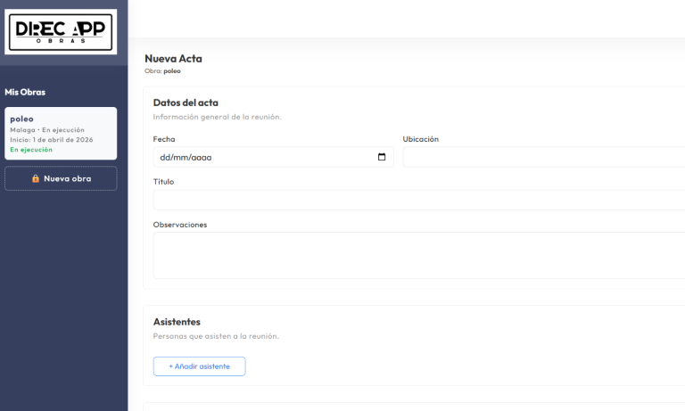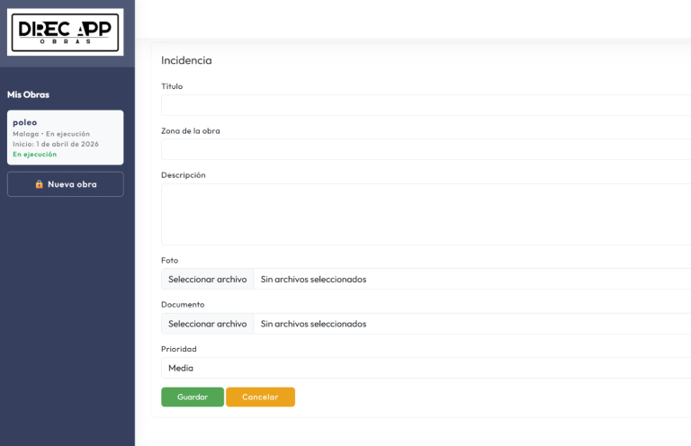DirecApp es una aplicación de gestión de obras que permite controlar incidencias, visitas, actas y documentación en tiempo real desde el móvil o tablet.